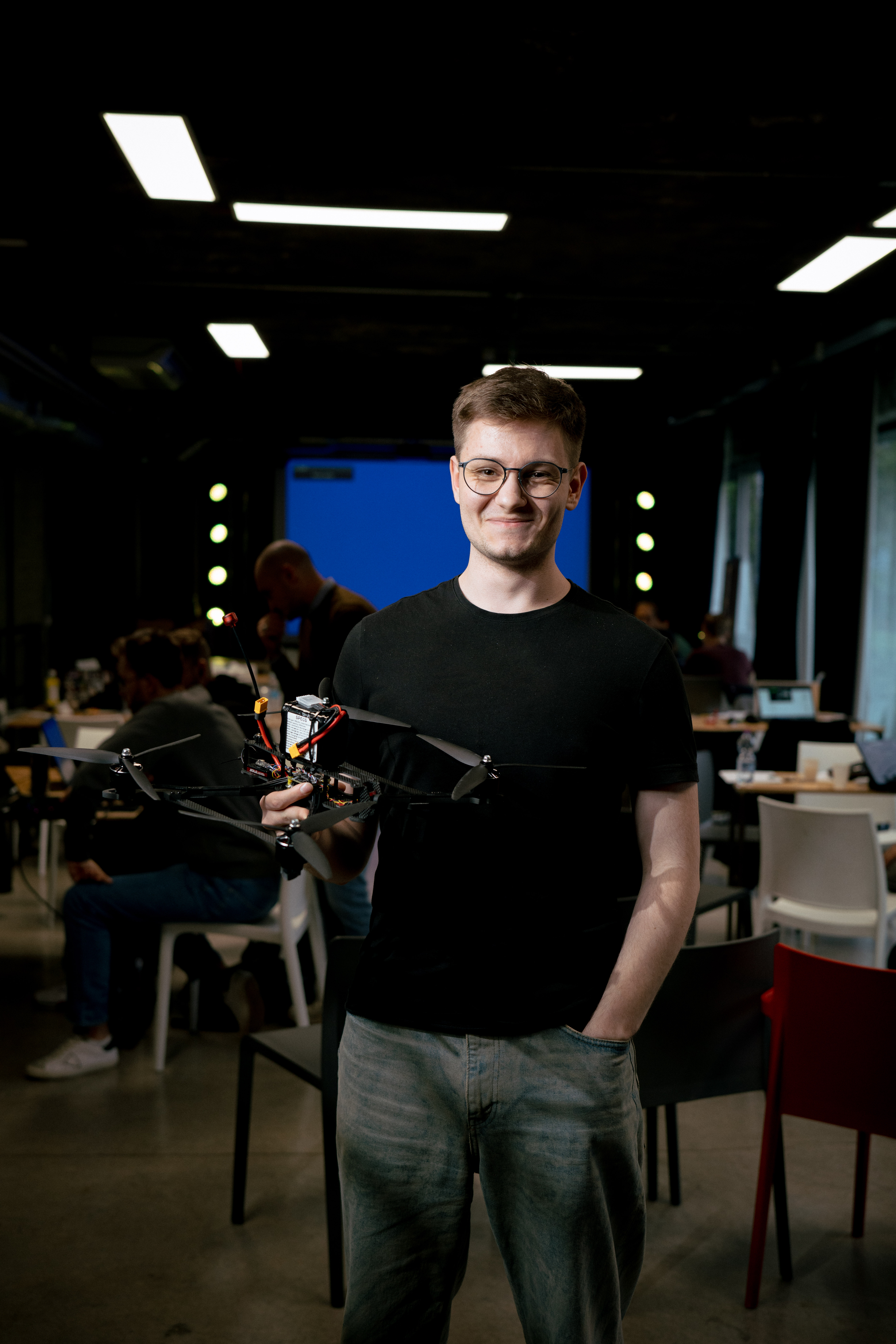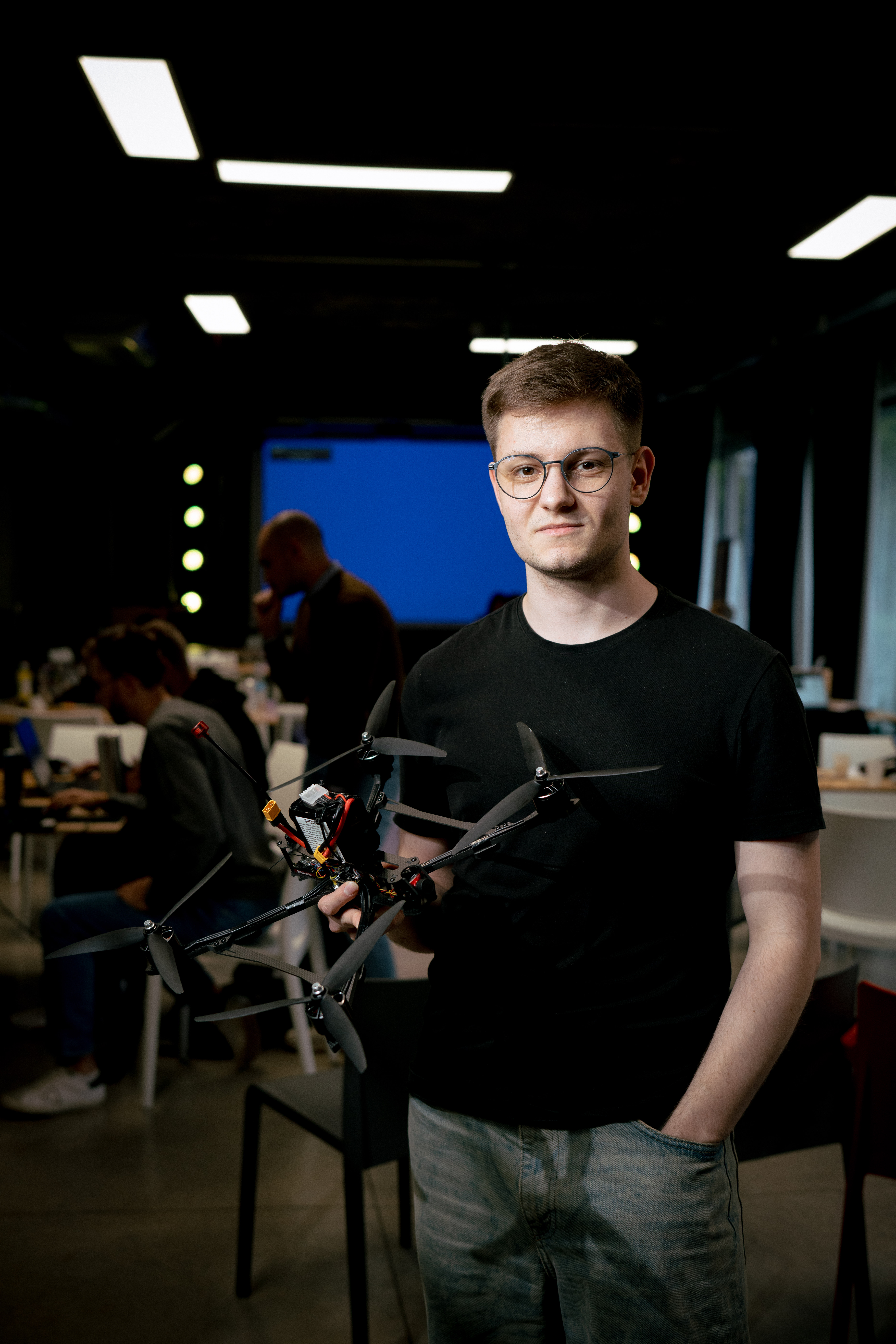 „Naszym celem było zwiększenie dynamiki działań dronów bez wprowadzania kosztownych modyfikacji. Po burzy mózgów w zespole i konsultacjach z mentorami obecnymi na hackathonie doszliśmy do wniosku, że kluczowe może być zastosowanie dodatkowej kamery, którą sterowałby drugi operator. W takim układzie pilot skupiłby się wyłącznie na lataniu dronem, podczas gdy drugi operator prowadziłby obserwację pola walki oraz zrzucał ładunki. Pozwala to na działanie podobne do taktyki samolotów bombowych — szybki przelot nad celem przy jednoczesnym wykonywaniu zadań.”