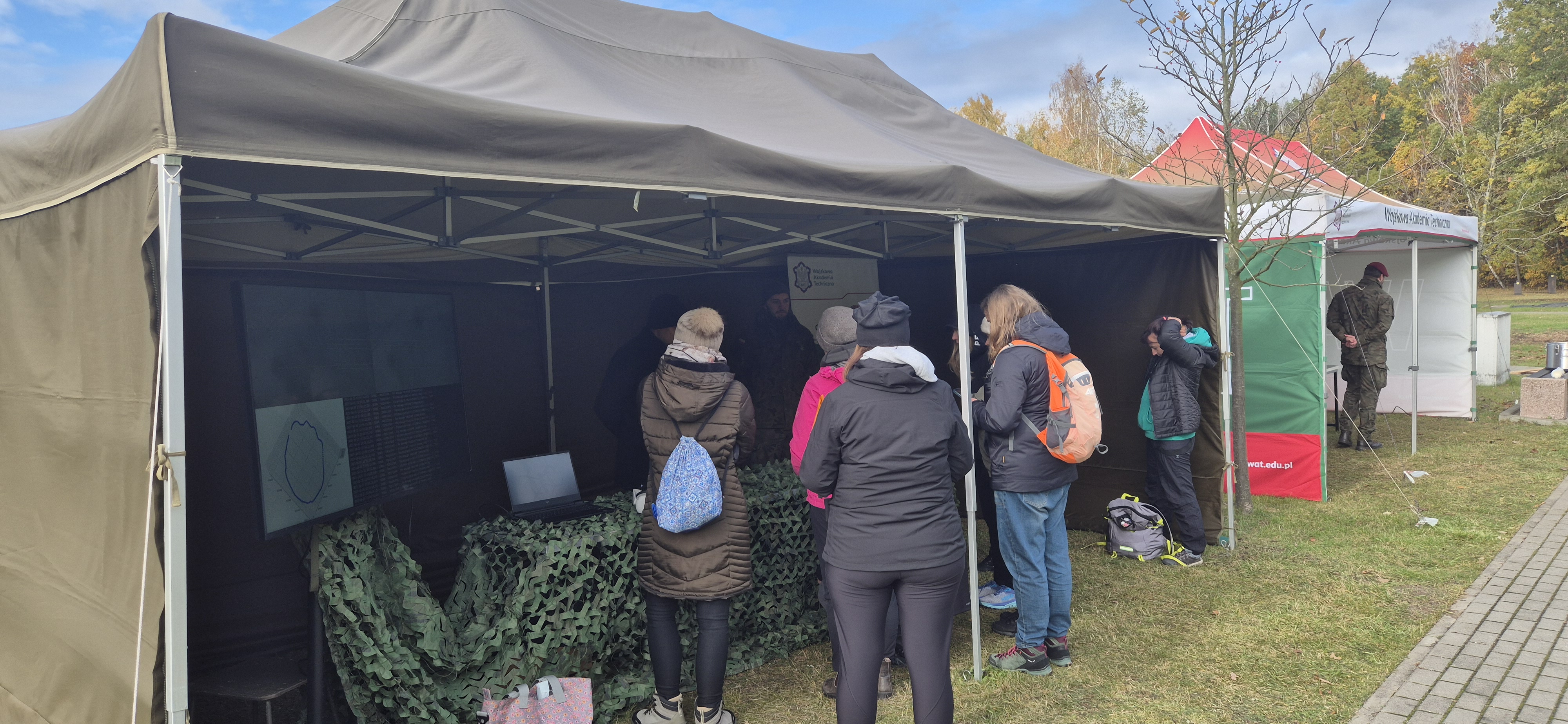 Na stanowisku prowadzonym przez dr. inż. Pawła Moszczyńskiego oraz podchorążych Antoniego Przeperskiego i Mateusza Pyśka uczestnicy dowiedzieli się, na czym polega rola Wojsk Obrony Cyberprzestrzeni w Siłach Zbrojnych RP, jakie kompetencje są dziś kluczowe (IT, cyberbezpieczeństwo, kryptologia, AI) dla Cyber Żołnierzy oraz jak każdy obywatel może wzmacniać narodową odporność przez podstawową cyberhigienę i krytyczną weryfikację informacji.