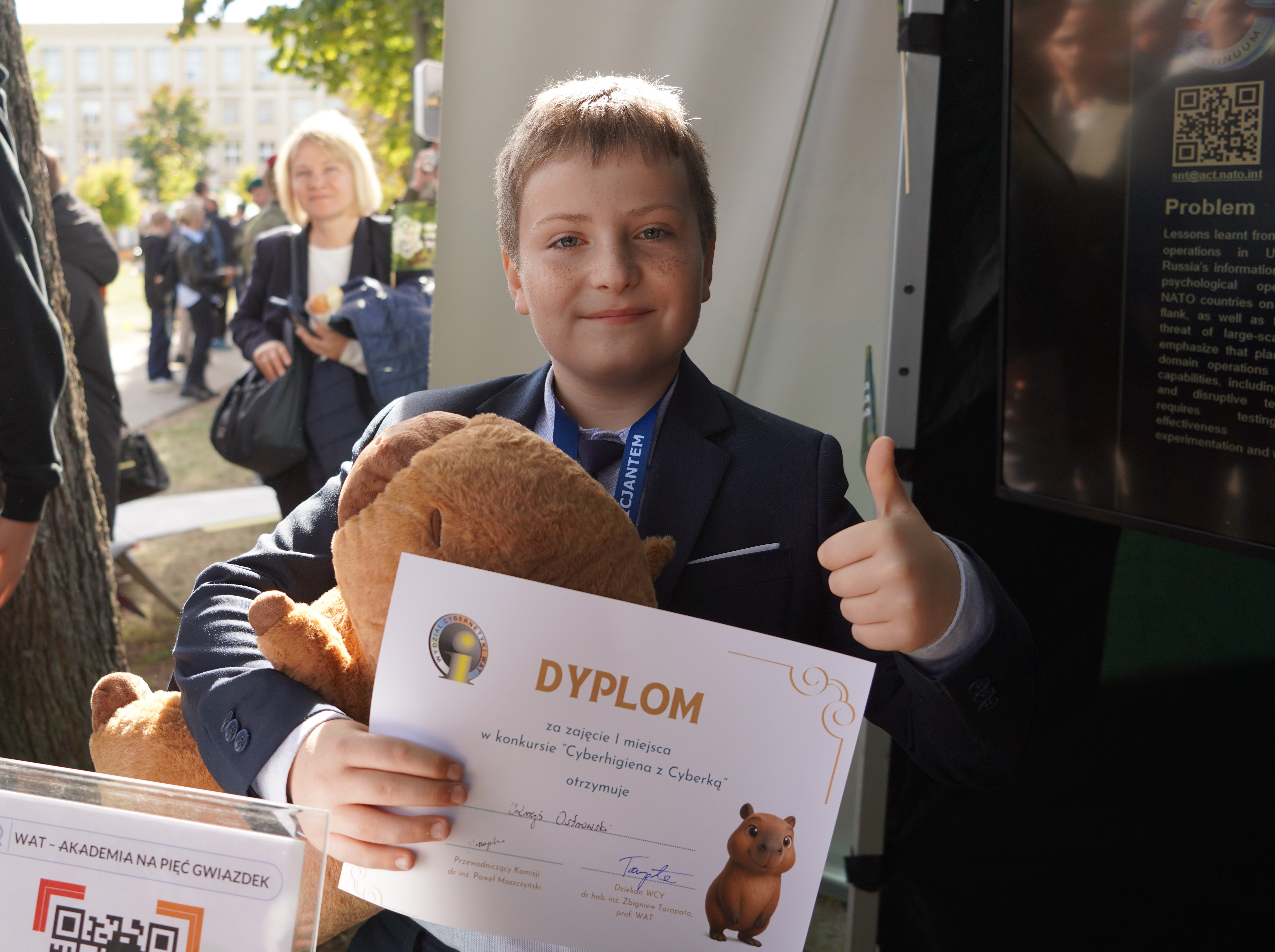 Wydział przygotował także atrakcję dla rodzin z dziećmi – konkurs z zasad cyberhigieny. Rywalizacja odbywała się w trzech kategoriach wiekowych i miała na celu popularyzowanie zdrowych nawyków w Internecie wśród najmłodszych i młodzieży. 70 uczestników sprawdziło swoją wiedzę m.in. z zakresu tworzenia silnych haseł, ostrożnego korzystania z mediów społecznościowych, rozpoznawania prób phishingu czy dbania o regularne aktualizacje oprogramowania. To proste, codzienne zasady, które mają ogromne znaczenie, ponieważ nawet najbardziej zaawansowane systemy obrony nie będą skuteczne, jeśli użytkownicy zaniedbają podstawowe środki ostrożności.