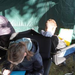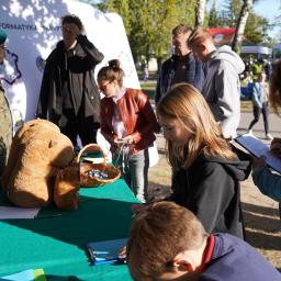 Goście mieli okazję przenieść się w świat wirtualnej rzeczywistości zakładając okulary VR Meta Quest 3, spróbować sił w rozszyfrowywaniu kodu książkowego ukrytego na kamykach, a także porozmawiać z naukowcami o współczesnych metodach szyfrowania, ale nie tylko.